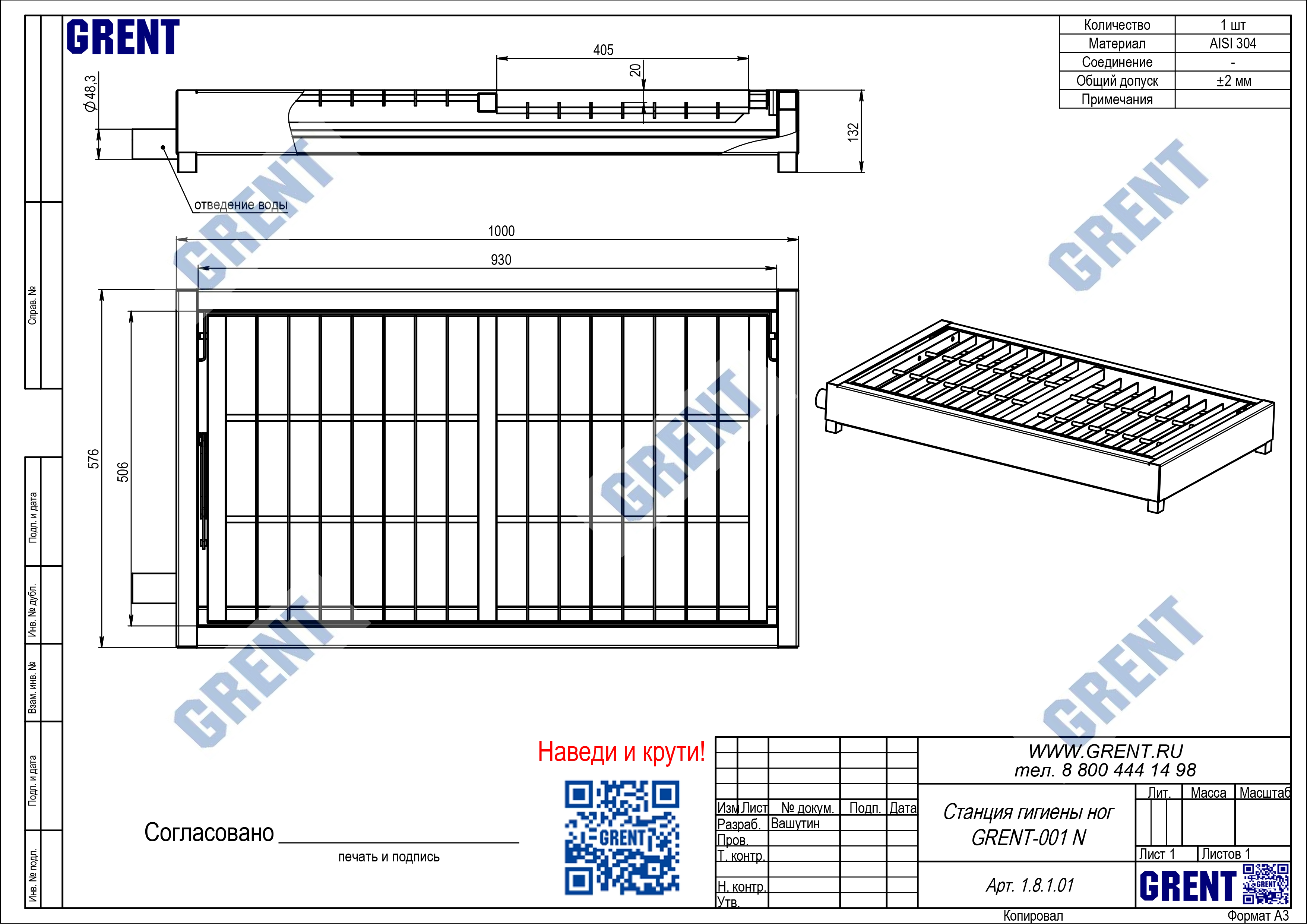 Станция гигиены обуви GRENT-001 N предназначена для дезинфекции подошв обуви персонала перед выходом (входом) из чистой зоны.