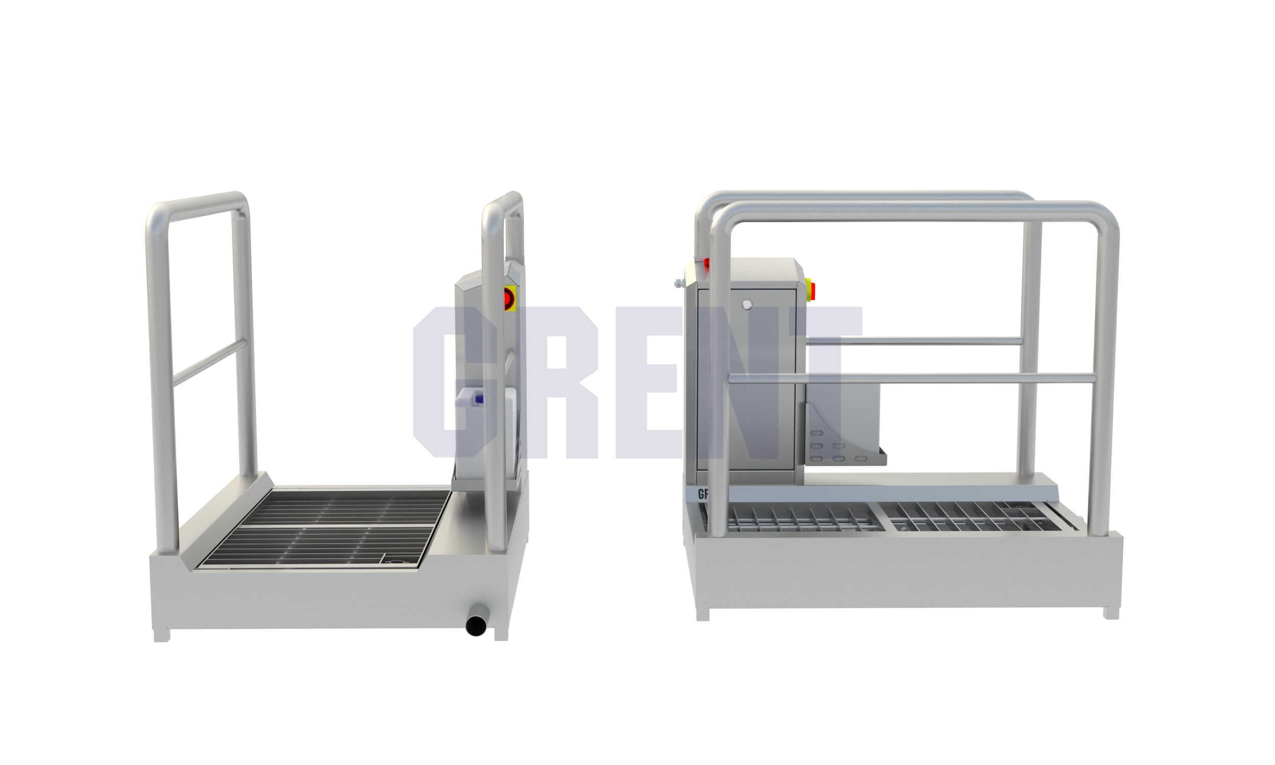 • Станция гигиены обуви оснащена каплесъёмной решеткой с анти-скользящей поверхностью для удаления излишков дезсредства.