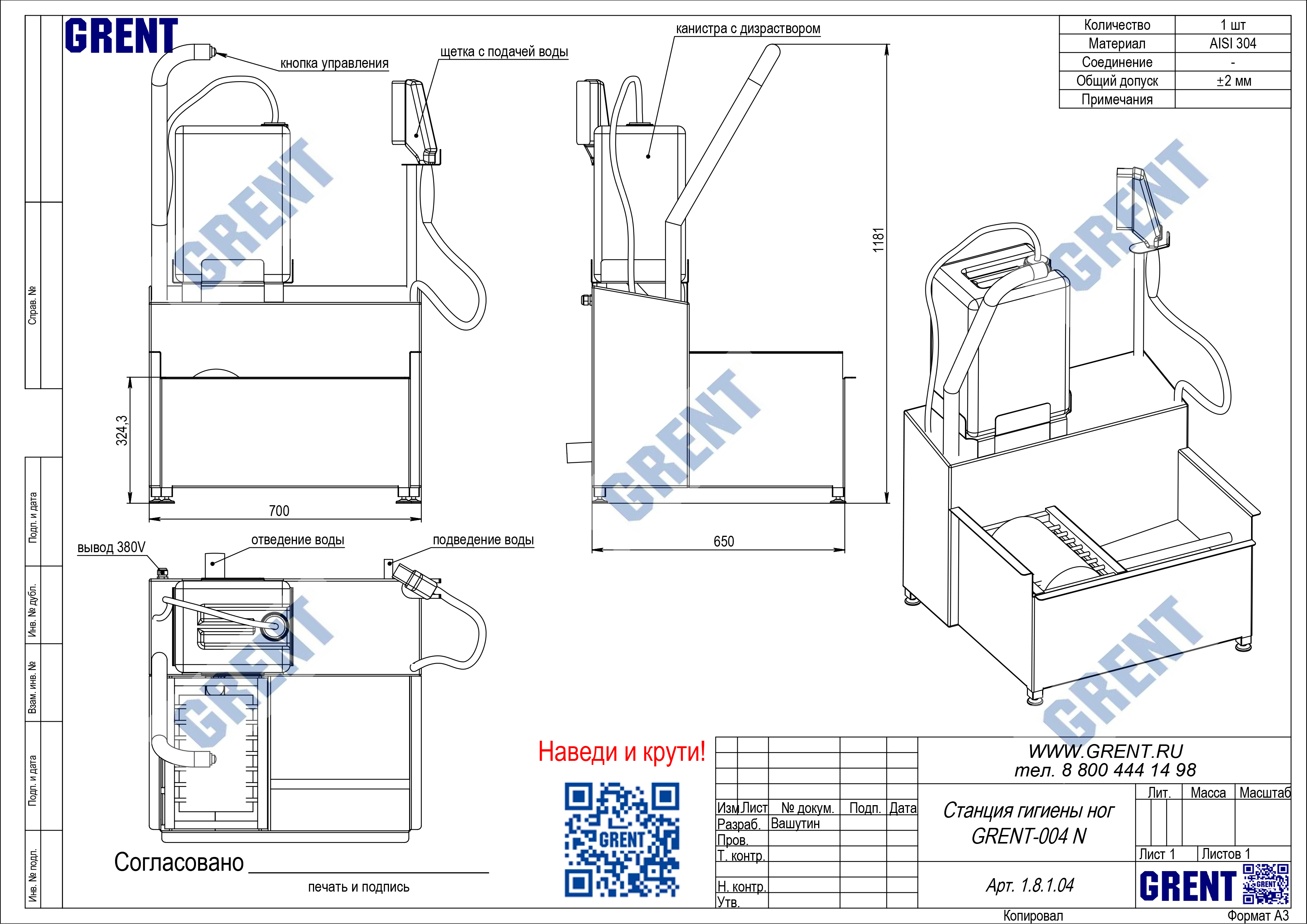 Станция гигиены обуви GRENT-004 N предназначена для дезинфекции подошв обуви персонала перед выходом (входом) из чистой зоны.