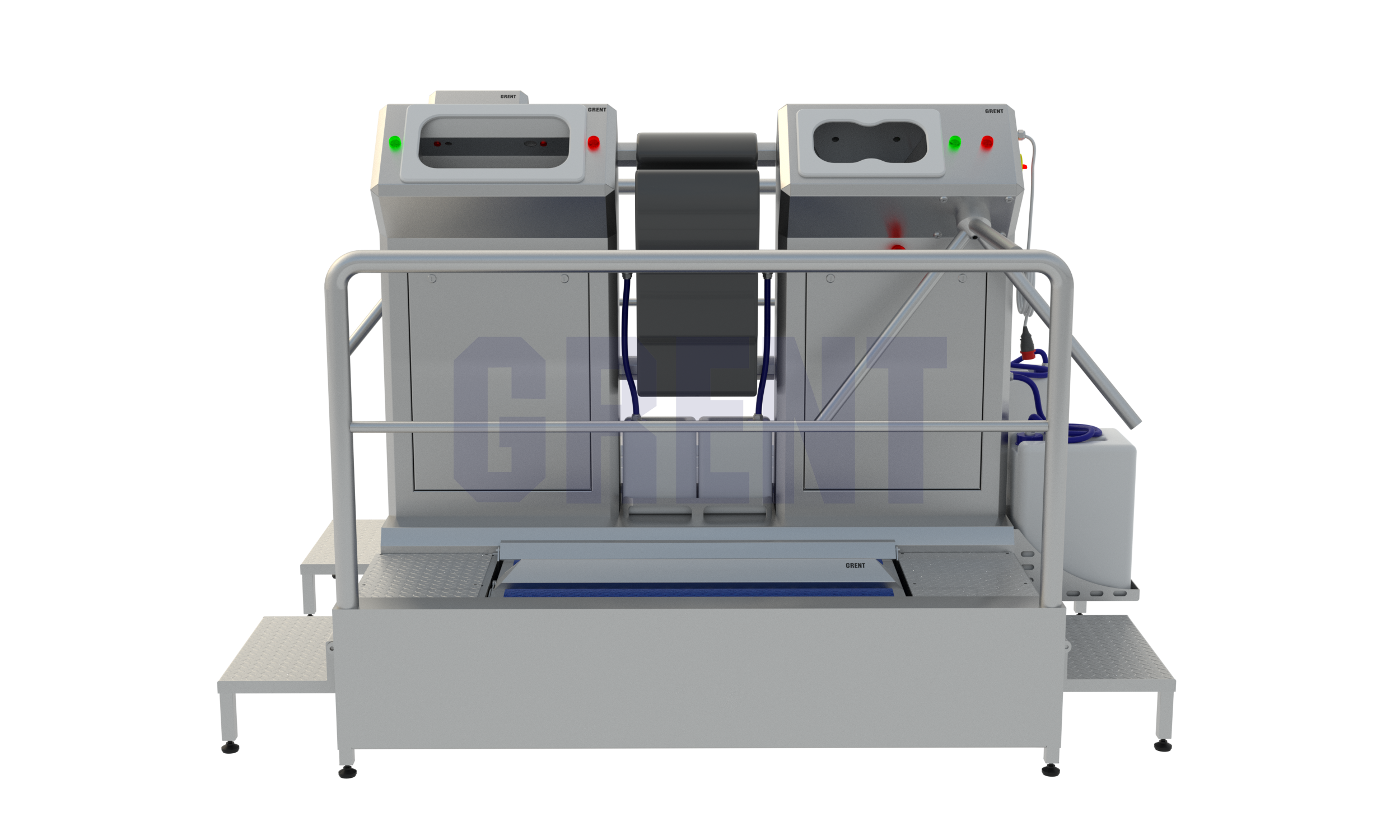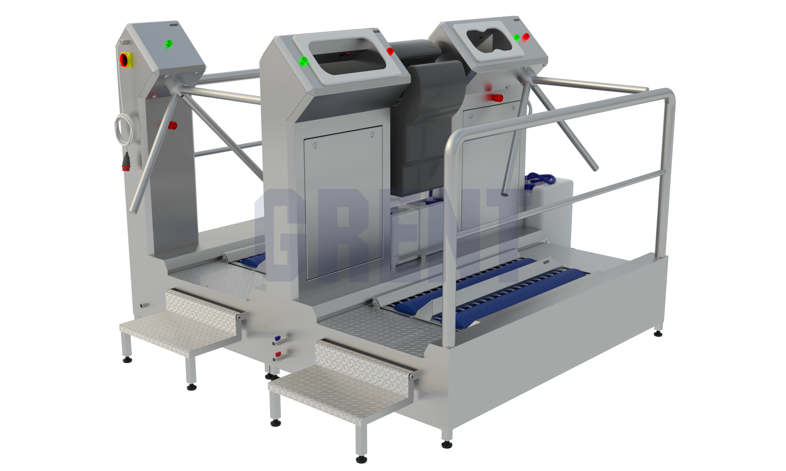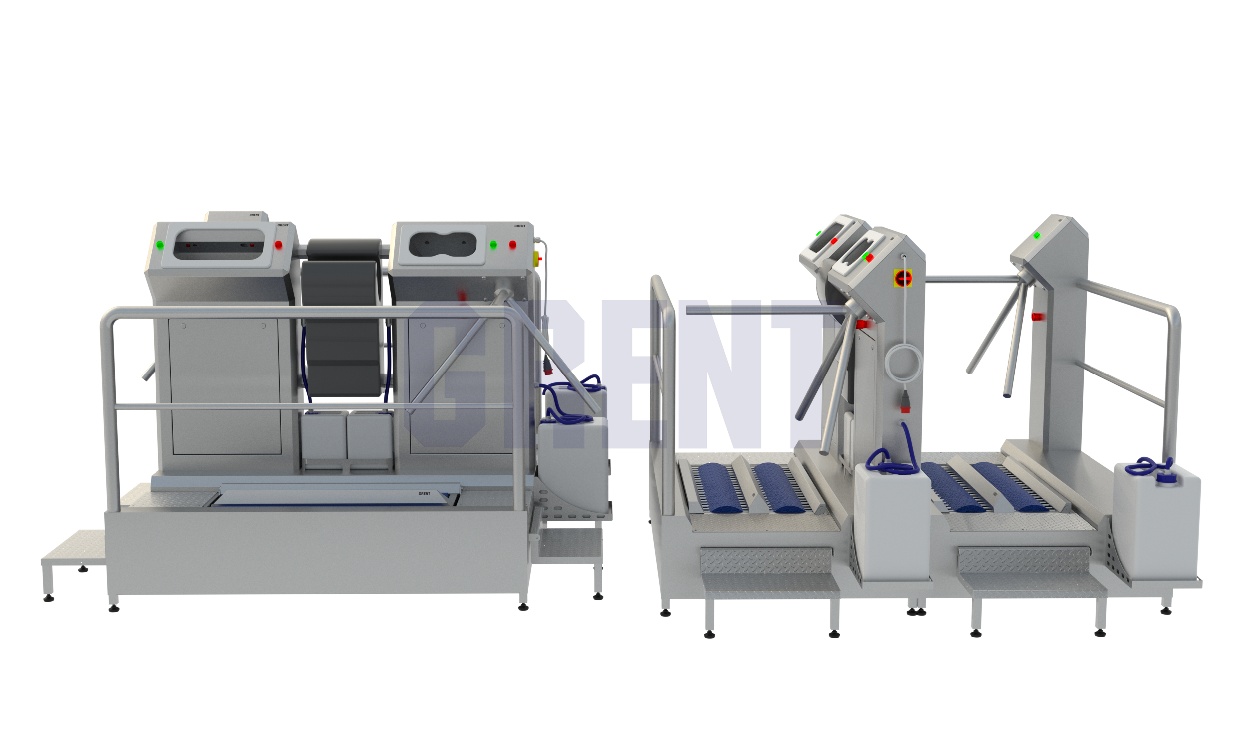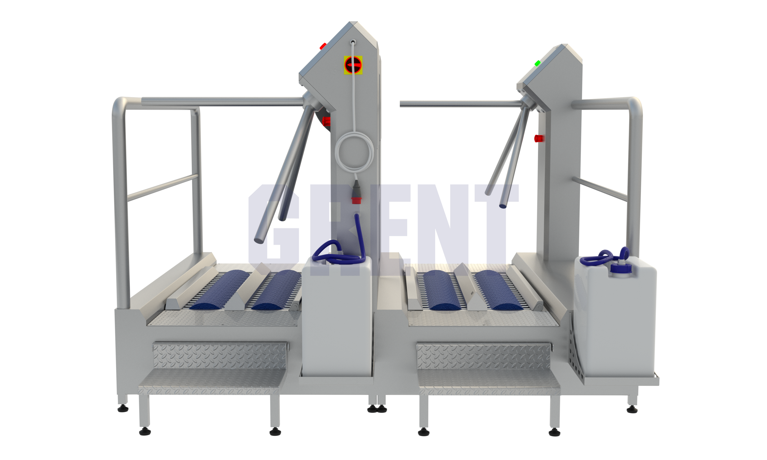 Двухсторонняя станция гигиены GRENT 028 P предназначена для мытья и дезинфекции кистей рук и подошвы обуви при входе в чистые помещения на производстве.