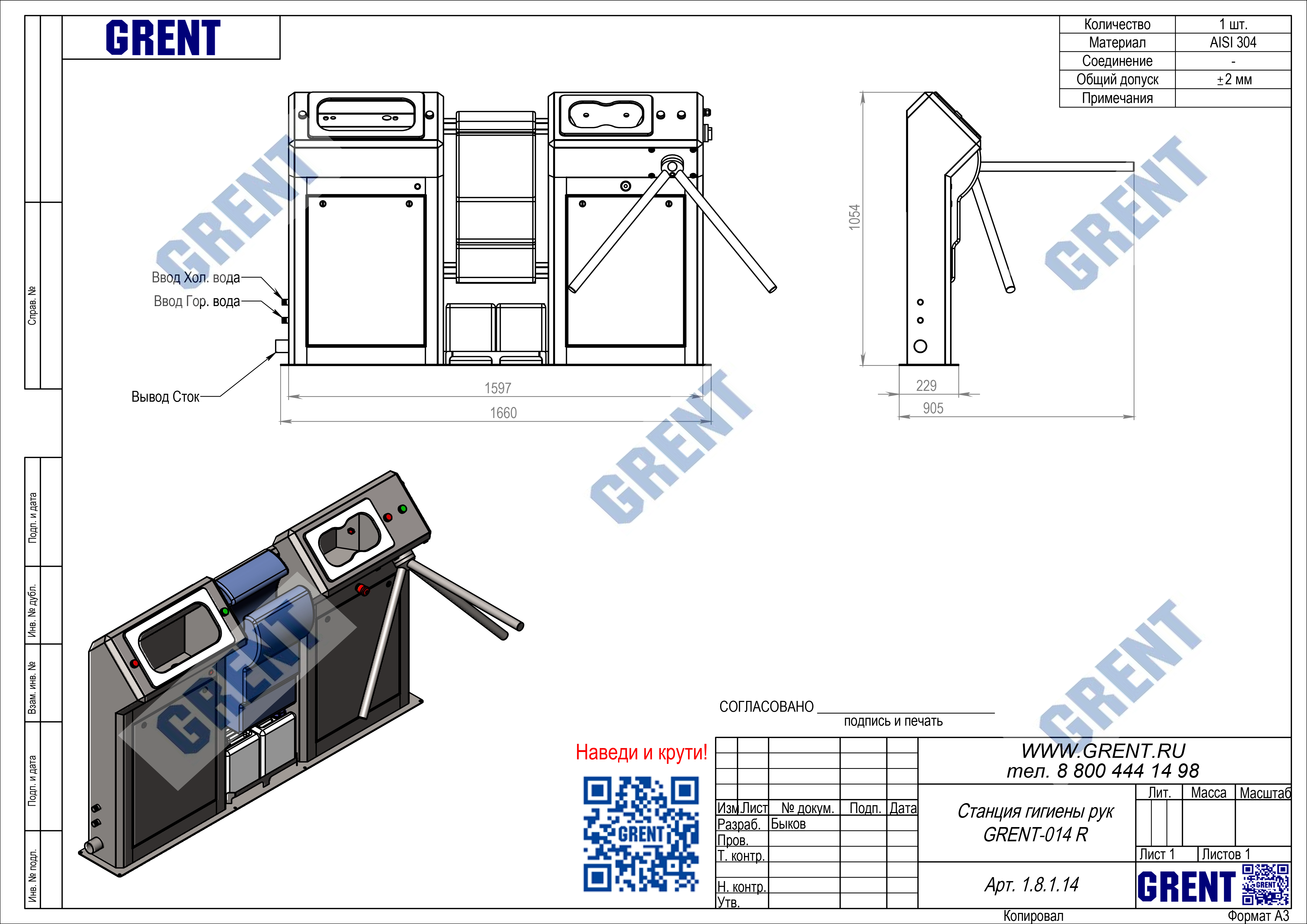 Станция гигиены GRENT 014 R предназначена для мытья и дезинфекции кистей рук при входе в чистые помещения на производстве.