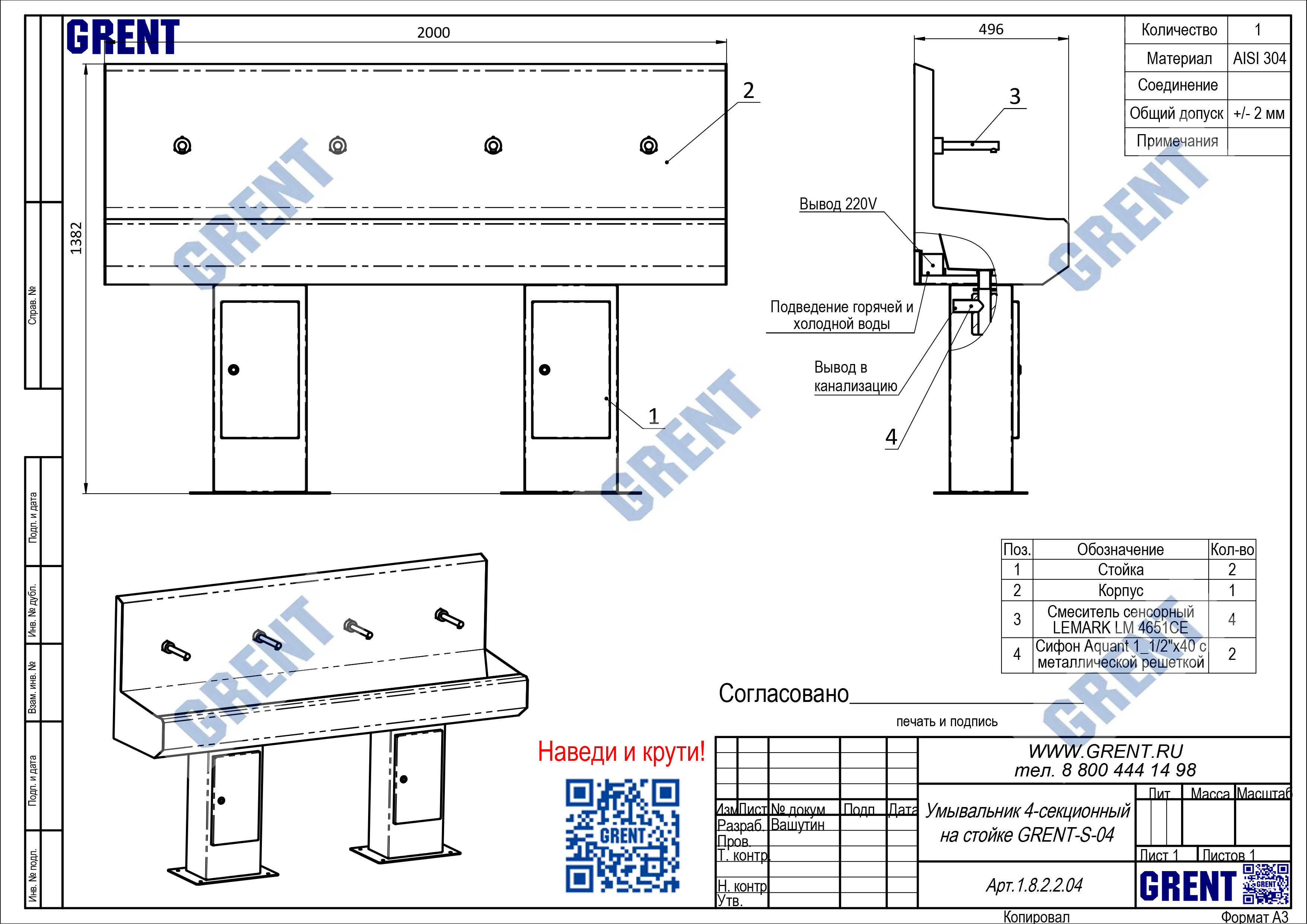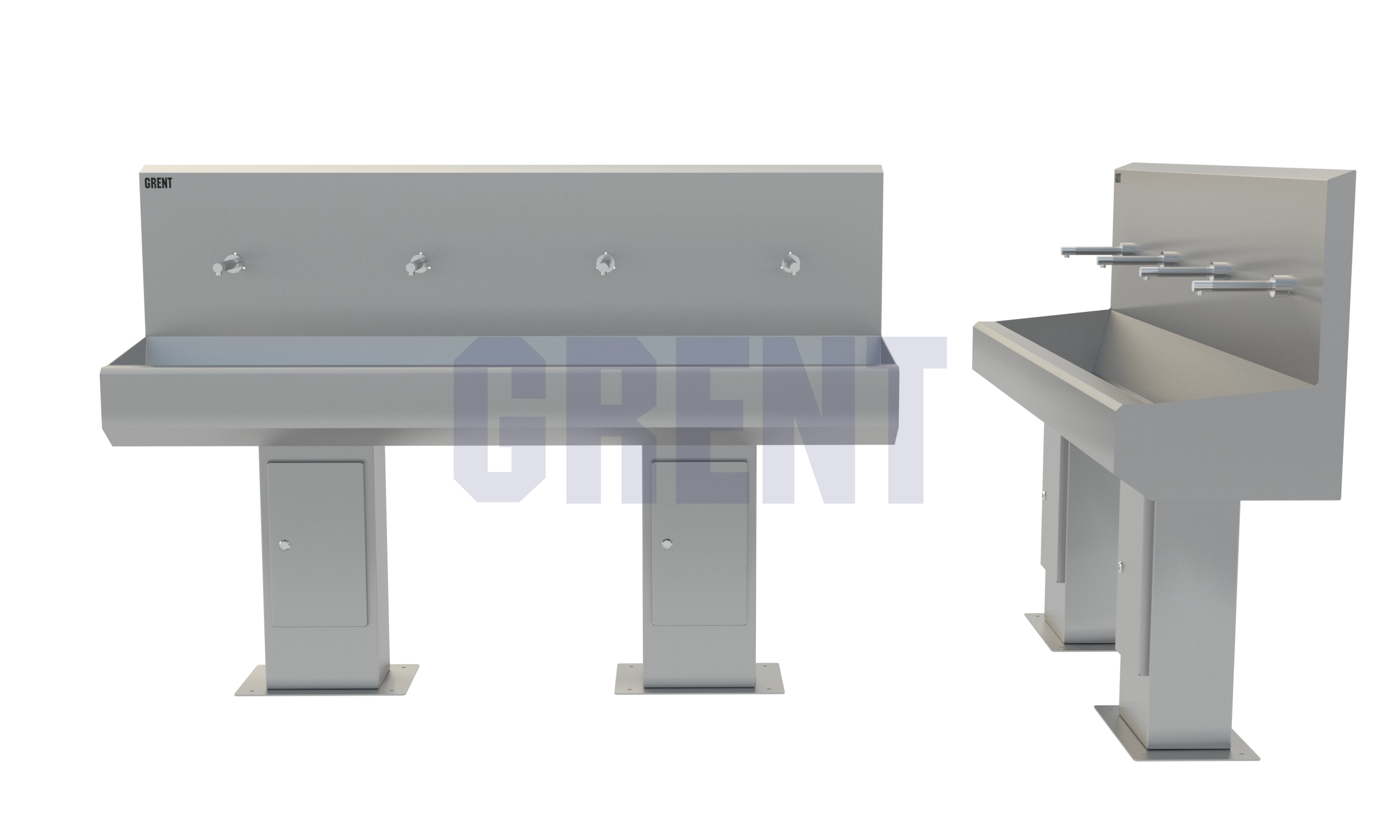 Четырех секционный умывальник GRENT-S-04 используется для бесконтактной мойки рук персонала преимущественно на предприятиях общепита и пищевой промышленности. Активация подачи воды осуществляться фотодатчиком при поднесении рук к смесителю.